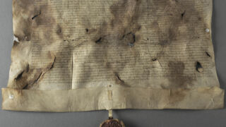 Pärgamendi mahulise kahanemise ja kokkutõmbumise tulemusena on dokument deformeerunud. br>