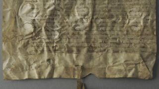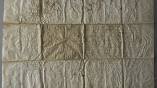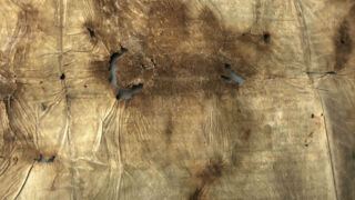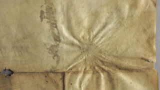 Characteristic deformation of folded parchment and volume shrinkage of the parchment.