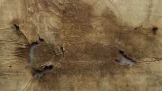 Shrinkage of the parchment at the edges of the page. The non-text page of the bound parchment is deformed, caused by shrinking of the parchment in the areas where the limbs attach to the skin.