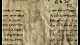 Deformation characteristic of a folded document. Fracture lines are clearly visible. As a result of the deformation, the parchment is no longer flat after unfolding.