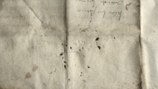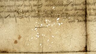 Hapraks muutunud pärgament. Bioloogilised kahjustused on sagedaks põhjuseks pärgamendi hapraks muutmisel.
