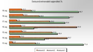 Thus, the analysis showed that most common damages throughout the centuries was the occurrence of stains of various origins. Stained documents comprise 68% of the entire collection. Stains, regardless of their origins, turned out to be closely correlated to the degradation of parchment, i.e. the appearance of glass-like layers, as well as the deterioration in the condition of the documents resulted therefrom. The linear correlation coefficient (p), that characterizes the relationship (Andmemasin, 24.03.2016) between the appearance of stains and glass-like layers, was between p=0.7 and 0.82, which alludes to a strong relationship between stains and the durability of the document. This impact is somewhat smaller (between p=0.55 and 0.62) in the documents that date back to before the 16th century, both sides of which are scrapped on both sides into thin and elastic parchment, without the upper grain layer.